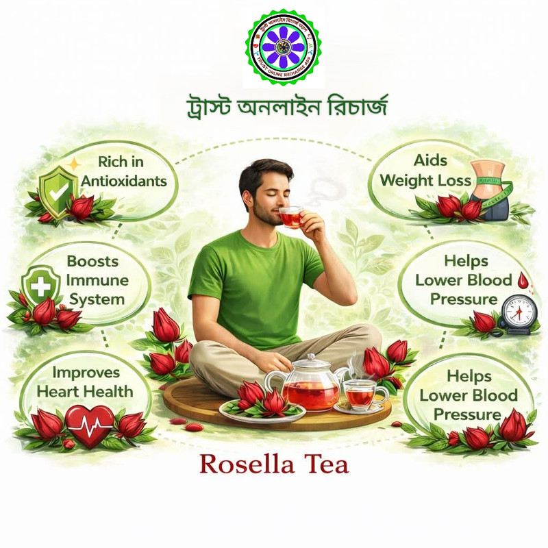 প্রতিদিনের ক্লান্তি দূর করতে এবং শরীরকে ভেতর থেকে সতেজ রাখতে বেছে নিন trust online recharge shop -এর প্রিমিয়াম ‘রোজেলা টি’ (মেস্তা চা)। এটি শুধু একটি পানীয় নয়, বরং আপনার সুস্থ জীবনধারার এক পরম বন্ধু।